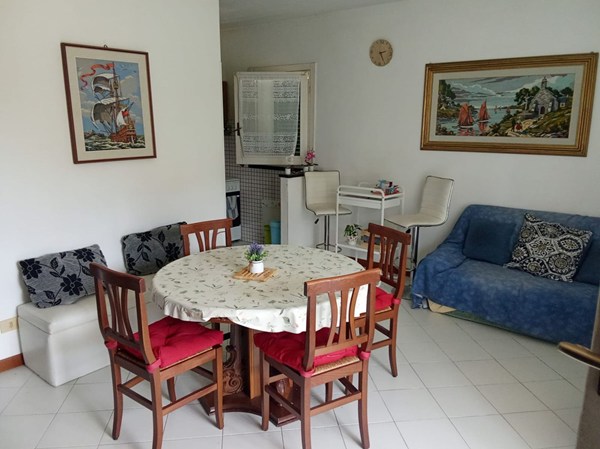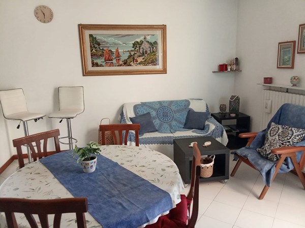 Situato a 1 Km dal lungomare in zona tranquilla, signorile e servita, comodo alla stazione ferroviaria, appartamento arredato posto al 4° piano con ascensore e composto da ingresso soggiorno con angolo cottura due camere bagno balcone con vista, dotato di 4/5 posti letto, lavatrice, Tv, riscaldamento centrale e box, locazione transitoria, no contratto ad uso abitativo